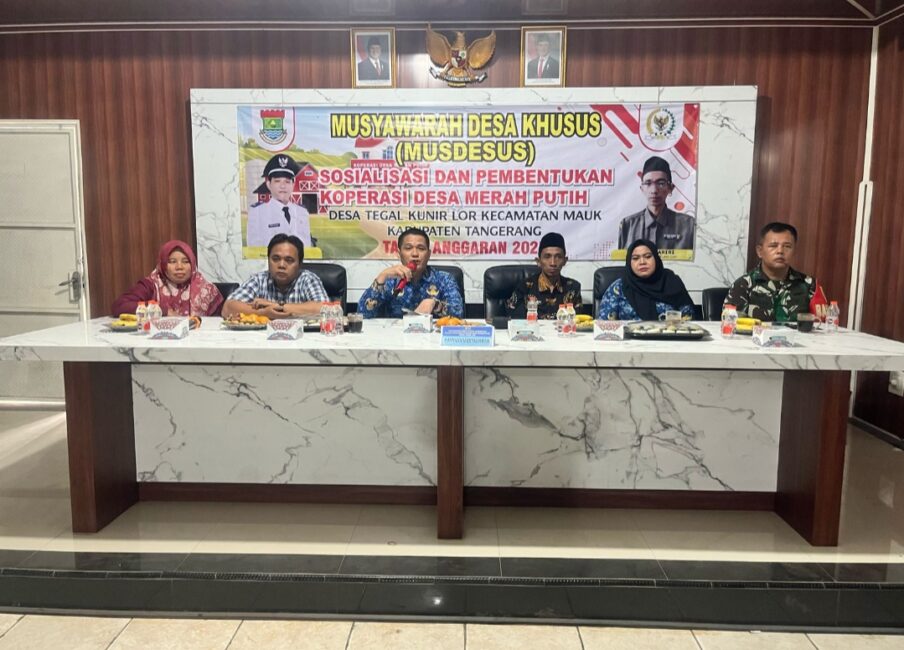 KABUPATEN TANGERANG– Sebuah babak baru dalam upaya pemberdayaan ekonomi masyarakat Desa Tegal Kunir Lor kecamatan Mauk Kabupaten Tangerang ditandai dengan berdirinya Koperasi Desa Merah Putih Tegal Kunir Lor Koperasi ini resmi didirikan melalui Rapat Anggota yang digelar pada Selasa,20 Mei 2025 di Aula Kantor Desa Tegal Kunir Lor dengan dihadiri oleh Kepala Desa MH Kipang BPD,Binamas,Babinsa Staf Desa Berserta Jajaran dan Perwakilan Dari Tingkat Kecamatan.