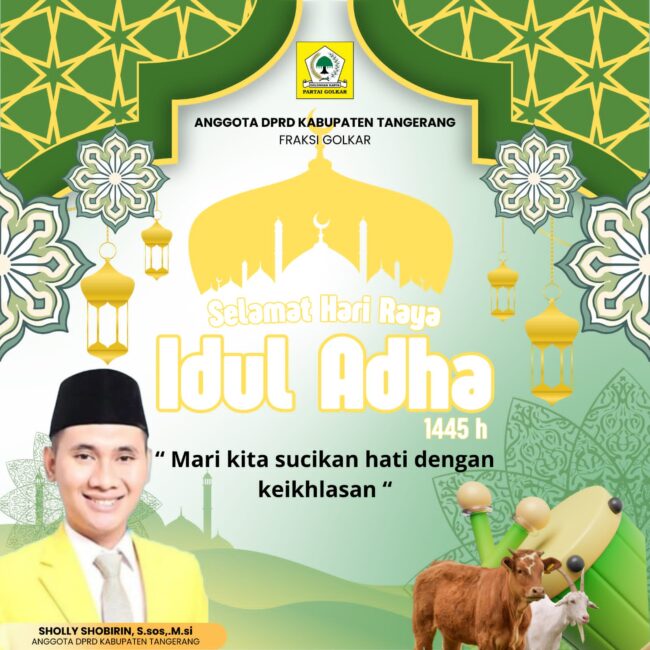 KABUPATEN TANGERANG – Sholly Shobirin S.SoS.MSi Anggota DPRD Kabupaten Tangerang Fraksi Partai Golkar Mengucapkan Selamat Hari Raya Idul Adha 1446 Hijriah 2025