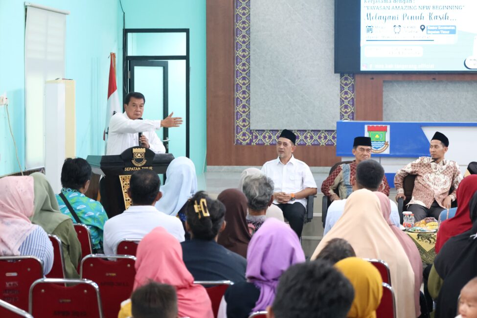 Sementara itu, Ketua Umum Masyarakat Ekonomi Syariah Kab. Tangerang Dr. KH. M. Mahrusillah mengucapkan terima kasih atas kehadiran dan dukungan Bupati Tangerang terhadap MES. Selain untuk menyosialisasikan MES, juga bersama pemerintah daerah dan para mitra membantu meringankan beban masyarakat secara langsung, khususnya di Kec. Sepatan Timur.