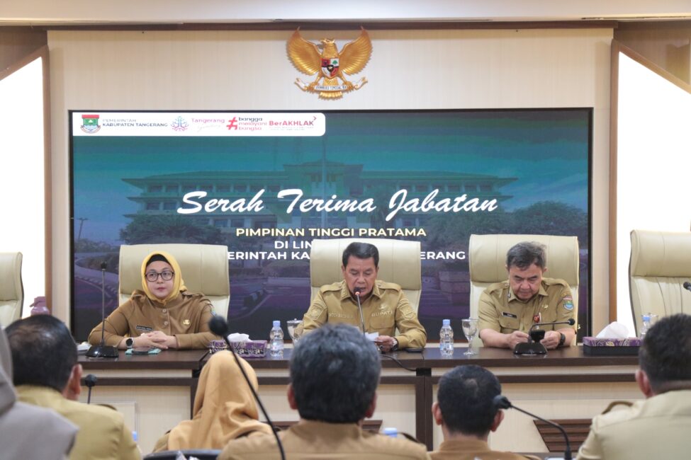 KABUPATEN TANGERANG –Bupati Tangerang, Moch. Maesyal Rasyid bersama Wakil Bupati Tangerang, Intan Nurul Hikmah menghadiri acara serah terima jabatan (Sertijab) pejabat pimpinan tinggi pratama (Eselon II) di lingkungan Pemerintah Kabupaten Tangerang. Acara tersebut digelar di Ruang Rapat Wareng, Gedung Sekretariat Daerah Kabupaten Tangerang, Selasa (15/7/25).