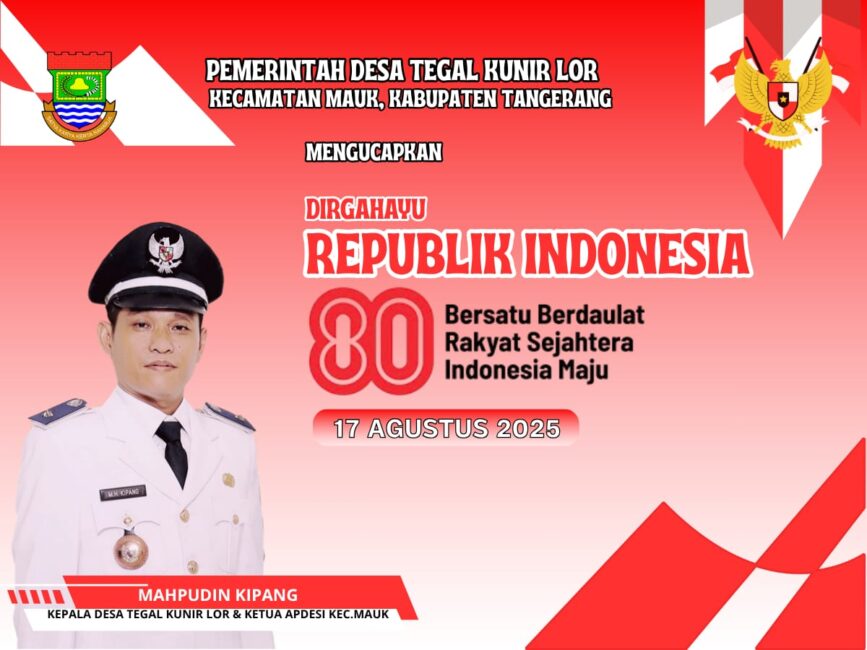 KABUPATEN TANGERANG – MH Kipang Kepala Desa Tegal kunir Lor Sekaligus Ketua APDESI kecamatan Mauk Kabupaten Tangerang Mengucapkan Dirgahayu Kemerdekaan Republik Indonesia Yang Ke- 80 Tahun