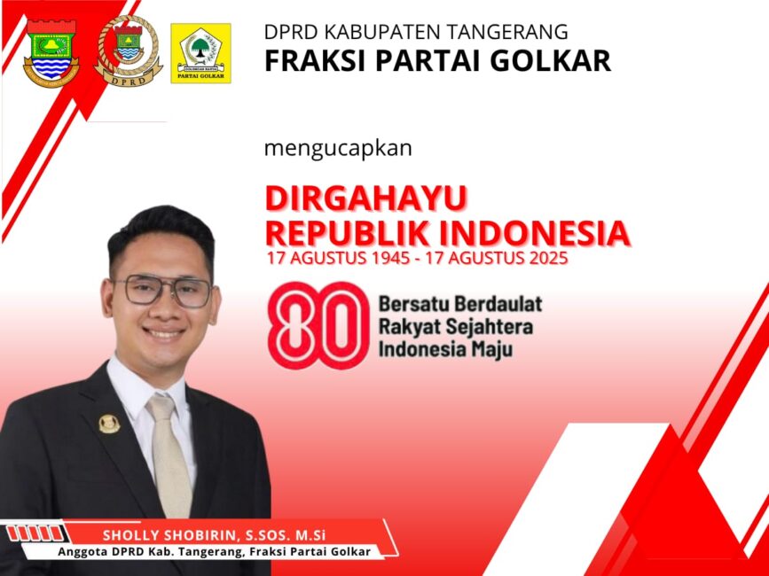 KABUPATEN TANGERANG – Sholly Shobirin.S.Sos.M.Si Anggota DPRD Fraksi Partai Golkar kabupaten Tangerang Mengucapkan Selamat Dirgahayu Kemerdekaan Republik Indonesia yang Ke -80 Tahun