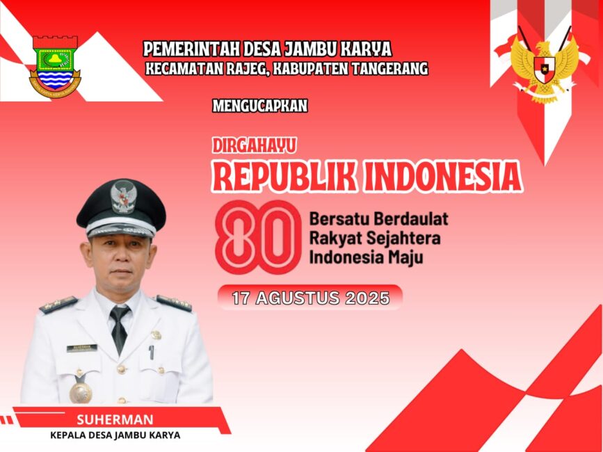 KABUPATEN TANGERANG – Suherman Kepala Desa Jambu Karya Kecamatan Rajeg kabupaten Tangerang Beserta Jajaran Mengucapkan Dirgahayu RI Ke 80 Tahun