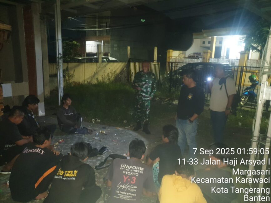 TANGERANG – Polsek Karawaci mengamankan sembilan remaja yang kedapatan nongkrong sambil mengonsumsi minuman keras jenis ciu di sekitar Masjid Al-Ittifaq, Jalan Arya Santika, Kelurahan Margasari, Kecamatan Karawaci, Kota Tangerang, Minggu (7/9/2025) dini hari.