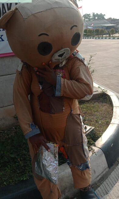 Di balik kostum badutnya yang lusuh dan banyak tambalan ternyata beliau adalah seorang wanita yang perkasa ,seorang ibu berhati luhur , berjiwa besar demi kedua anaknya dan keluarga , rela berdiri sepanjang hari , rasa lapar ,haus ,lelah di tepis jauh demi buah hati tercinta dan keluarga .