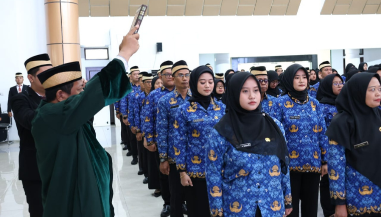KABUPATEN TANGERANG – Bupati Tangerang, Moch. Maesyal Rasyid, melantik dan mengambil sumpah/janji 179 Aparatur Sipil Negara (ASN) baru, yang terdiri atas 177 Pegawai Pemerintah dengan Perjanjian Kerja (PPPK) tahap II serta 2 Calon Pegawai Negeri Sipil (CPNS) lulusan IPDN yang resmi diangkat menjadi PNS.