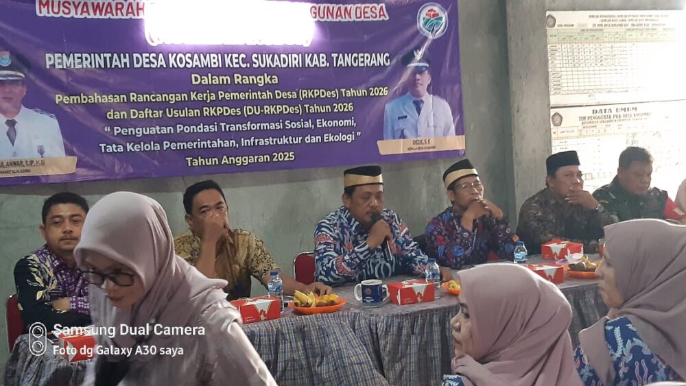 KABUPATEN TANGERANG – Pemerintah Desa Kosambi  Kecamatan Sukadiri Kabupaten Tangerang Banten, Menggelar Musrenbangdes Tahun Anggaran 2026 , dengan mengusung tema Penguatan Pondasi Transformasi Sosial, Ekonomi Tata Kelola Pemerintahan,Infrastruktur dan Ekologi.
