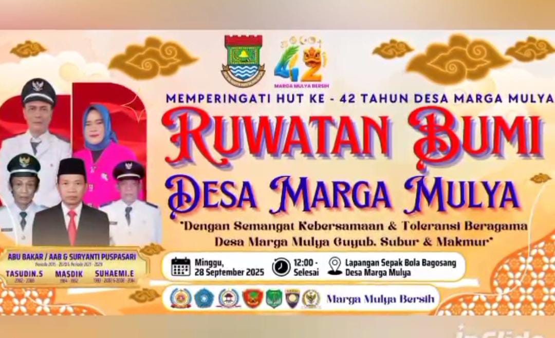 KABUPATEN TANGERANG – Pemerintah Desa Marga Mulya Kecamatan Mauk Kabupaten Tangerang Banten Indonesia menggelar Ruwatan Sedekah Bumi dalam rangka Memperingati HUT Ke -42 Memperingati Hari Jadi  Desa Marga Mulya Kecamatan Mauk Kabupaten Tangerang Minggu,(28/09/2025).