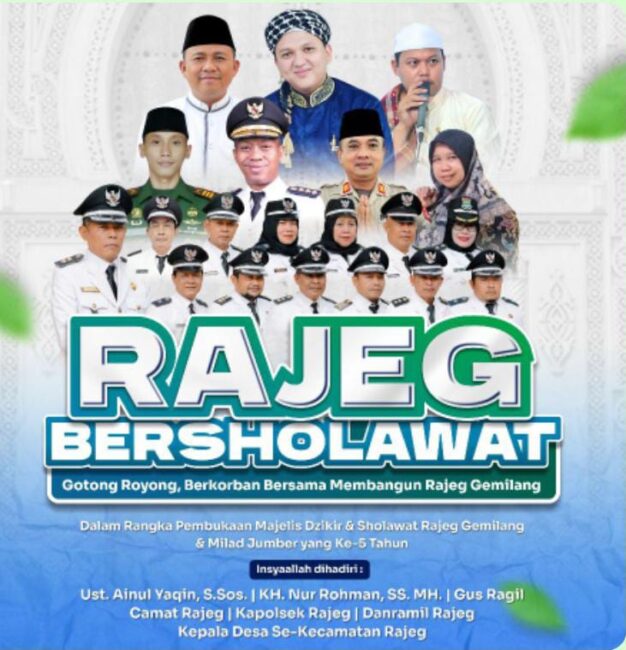Semoga Rajeg Barokah , Kecamatan Rajeg Maju,Jaya,Guyub, Subur,Makmur ,Sentosa , Aman dan Damai , Semoga Ridho Allah SWT selalu Menyertai seluruh Para Muspika , Masyarakat Rajeg dan Semua unsur Element Masyarakat Rajeg dengan Wasilah Bersholawat yang selalu Bergema di Seluruh Kecamatan Rajeg , semoga Barokah dan Jaya Selalu ,Aamiin Ya Robalamin