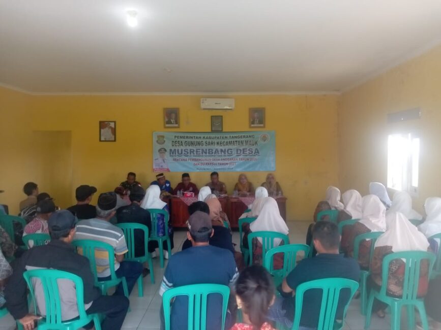 KABUPATEN TANGERANG – Pemerintahan Desa Gunung Sari menggelar Musrenbangdes Anggaran Tahun 2026 , kegiatan tersebut di laksanakan di Aula Kantor Desa Gunung Sari Kecamatan Mauk Kabupaten Tangerang Banten Indonesia pada hari Selasa,(30/09/2025) Pukul: 13.00 WIB S/ D selesai.