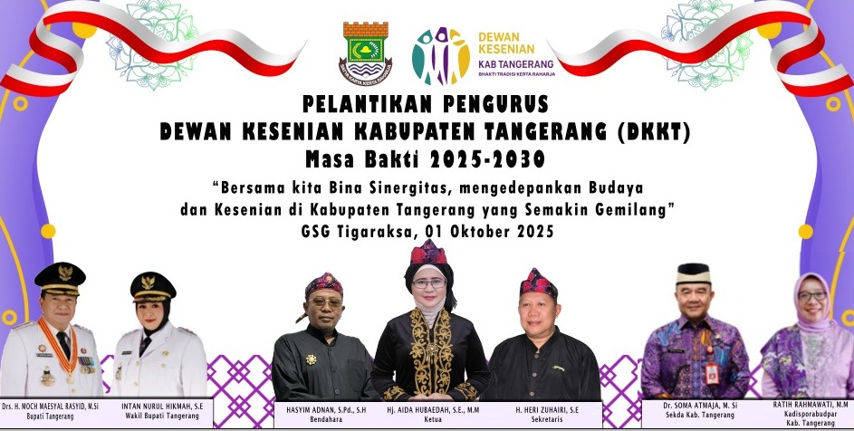 Apresiasi dan ucapan selamat atas terpilihnya Hj.Aida Hubaedah S.E, M.M selaku Ketua Dewan Kesenian dan Kebudayaan Kabupaten Tangerang untuk Periode 2025-2030, Selamat dan Sukses selalu.