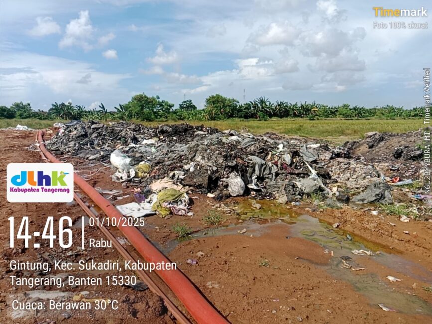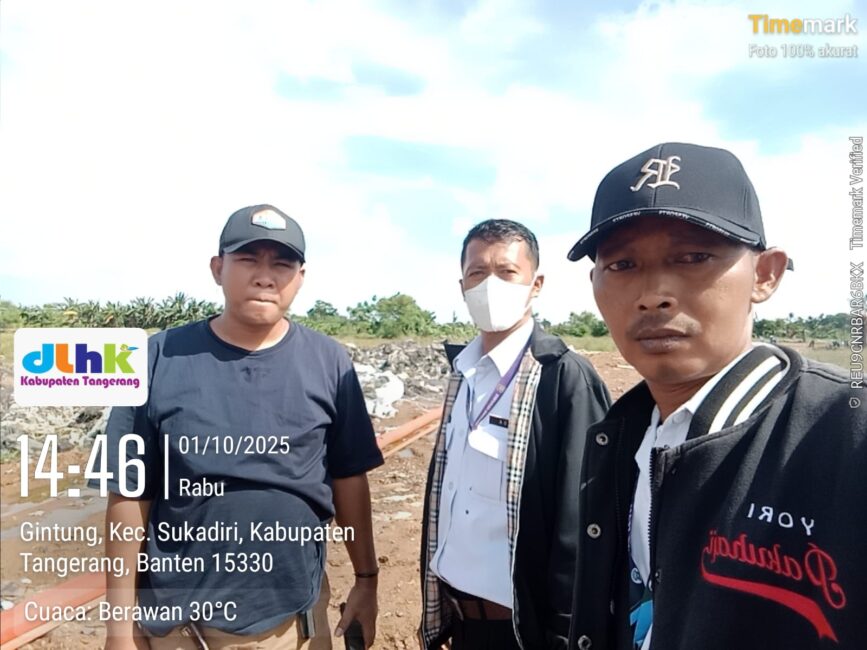 KABUPATEN TANGERANG – Ramainya pemberitaan di sejumlah media online terkait dugaan pembuangan limbah bahan berbahaya dan beracun (B3) di Desa Gintung, Kecamatan Sukadiri, langsung ditindaklanjuti Dinas Lingkungan Hidup dan Kebersihan (DLHK) Kabupaten Tangerang. Maman Koordinator Lapangan (Korlap) UPT 8 DLHK, yang mendapat arahan langsung dari Kepala Dinas, bergerak cepat meninjau lokasi untuk melakukan pengecekan.