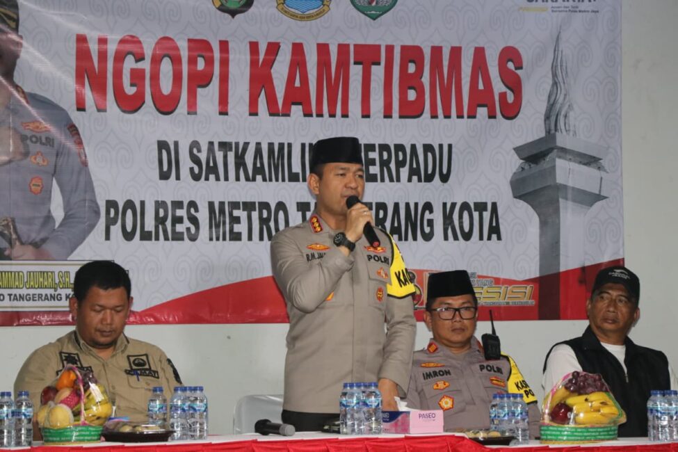 KOTA TANGERANG – Polres Metro Tangerang Kota menggelar kegiatan Ngopi Kamtibmas bersama masyarakat di wilayah hukum Polsek Neglasari, Kamis (2/10/2025) malam. Kegiatan ini merupakan implementasi program Kapolda Metro Jaya, Jaga Jakarta++, yang bertujuan mendekatkan polisi dengan masyarakat sekaligus menyerap aspirasi warga secara langsung.