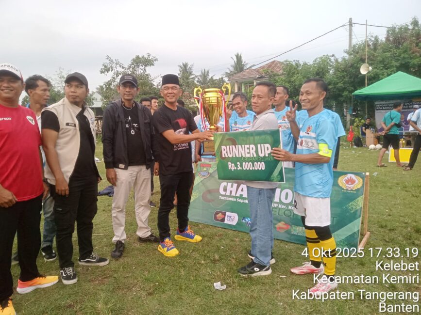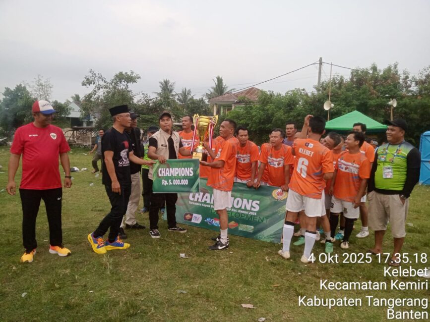 KABUPATEN TANGERANG – Jual beli serangan terjadi di laga Grand Final PIK 2 CUP U-40 Kecamatan Kemiri, Antara Team Desa Klebet dengan Desa Kemiri di Lapangan Sepak Bola Desa Klebet Kecamatan Kemiri Kabupaten Tangerang Banten Indonesia pada hari Sabtu sore,(04/10/2025).