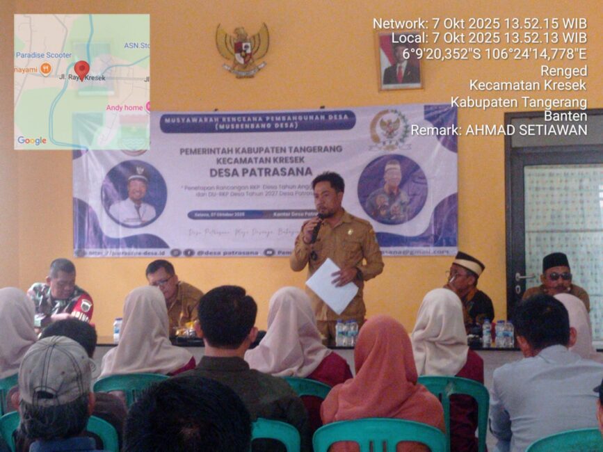 KABUPATEN TANGERANG – Pemerintah Desa Patrasana menggelar Musrenbangdes Tahun Anggaran 2026 di Aula Kantor Desa Patrasana Kecamatan Kresek Kabupaten Tangerang Provinsi Banten Selasa (07/10/2025).