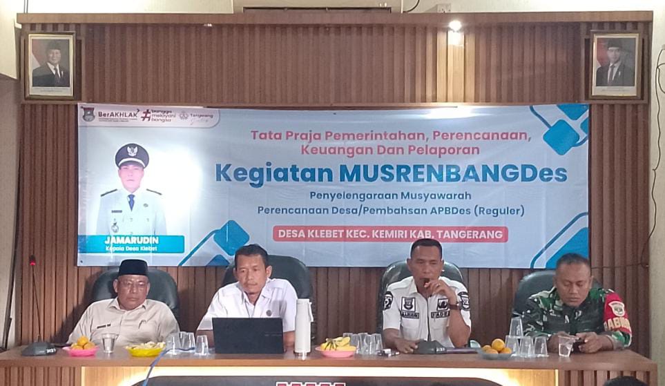 KABUPATEN TANGERANG – Pemerintahan Desa Klebet gelar Musrenbangdes Tahun Anggaran 2026 di Aula Kantor Desa Klebet Kecamatan Kemiri Kabupaten Tangerang Banten, pada, Rabu (08-10-25) sekira Pukul 13.00 S/D selesai.