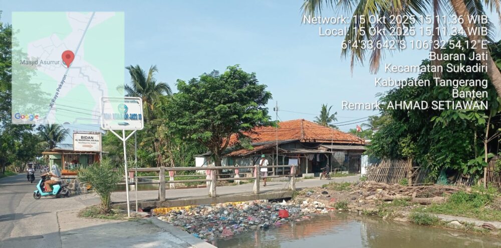 KABUPATEN TANGERANG – Tumpukan sampah berserakan di aliran sungai jembatan kebon kelapa Desa Pekayon Kecamatan Sukadiri Kabupaten Tangerang membuat pemandangan disekitar lokasi itu tampak jorok hingga mengeluarkan aroma tak sedap.