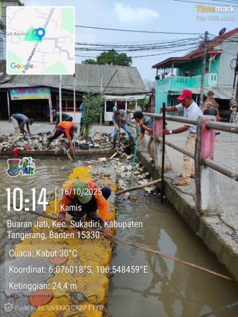 KABUPATEN TANGERANG – Camat Sukadiri H.Syaeful dengan Gerak Cepat dan Tanggapnya bersama Jajaran UPTD 8 Kabupaten Tangerang bergerak cepat menangani Sampah Liar Di area kali Jembatan Kebon kelapa Pekayon,Kamis (16/10/2025).