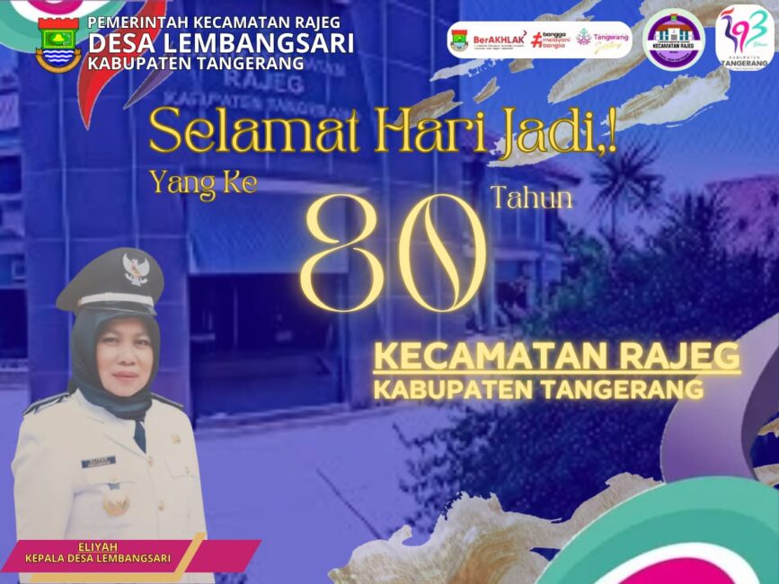 KABUPATEN TANGERANGEliyah Kepala Desa Lembang Sari Beserta Jajaran Mengucapkan Selamat Hari Jadi Kecamatan Rajeg Yang Ke 80 Tahun“Semoga Semakin Maju,Berdaya Saing,dan menjadi kawasan yang sejahtera bagi seluruh Masyarakatnya terus Berinovasi untuk Rajeg Yang Lebih Baik”.Semoga acara hari jadi Rajeg ke 80 dapat terselenggara dengan lancar.