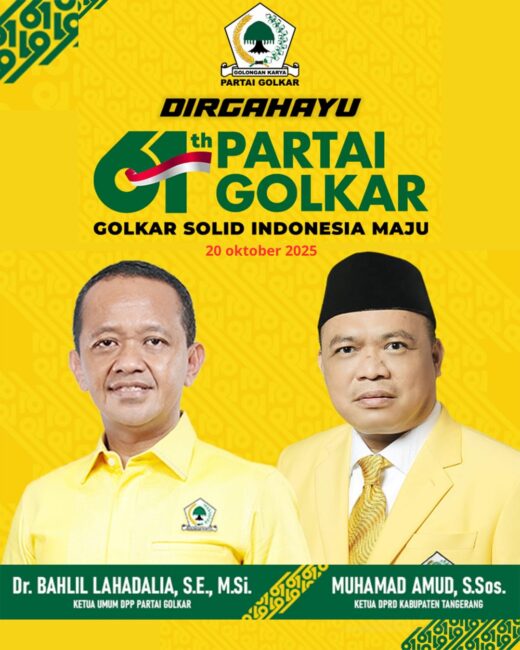 KABUPATEN TANGERANG – Muhamad Amud.S.SoS.Ketua DPRD Kabupaten Tangerang Mengucapkan Selamat Dirgahayu Partai Golkar Yang Ke – 61 Tahun,”Golkar Solid Indonesia Maju”.