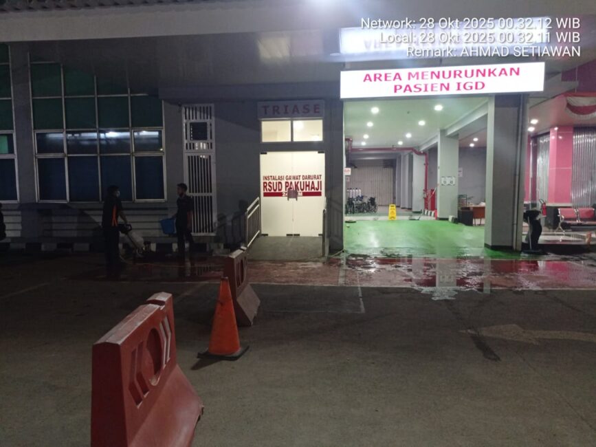 KABUPATEN TANGERANG – Bukan saja Pelayanan Kesehatan yang baik disajikan kepada pasien yang sedang berobat atau di rawat inap akan tetapi 24 Jam kebersihan ruang lingkup rumah sakit pun dijaga selalu ini semua demi kenyamanan dan keasrian ruang lingkup rumah sakit agar pasien sugesti untuk kesembuhan ,sebab lingkungan yang bersih dan sehat akan menciptakan suasana yang tenang dan teduh,Selasa Malam (28/10/2025).