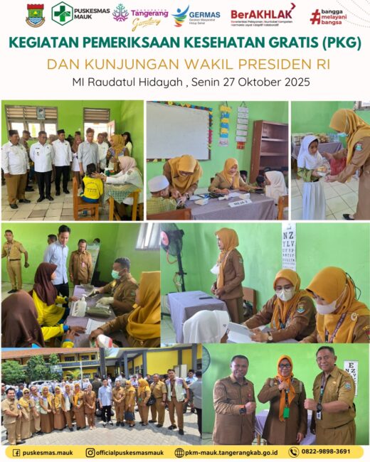 Dan UPTD Puskesmas Mauk bersama Dinas Kabupaten Tangerang menggelar kembali kegiatan PKG di MI Hodayah Mauk dengan sasaran yang di periksa sebanyak 142 Siswa , dan dikunjungi oleh Wakil Presiden Republik Indonesia Gibran Rakabuming Raka pada saat melakukan kegiatan Kunker ( Kunjungan Kerja ).