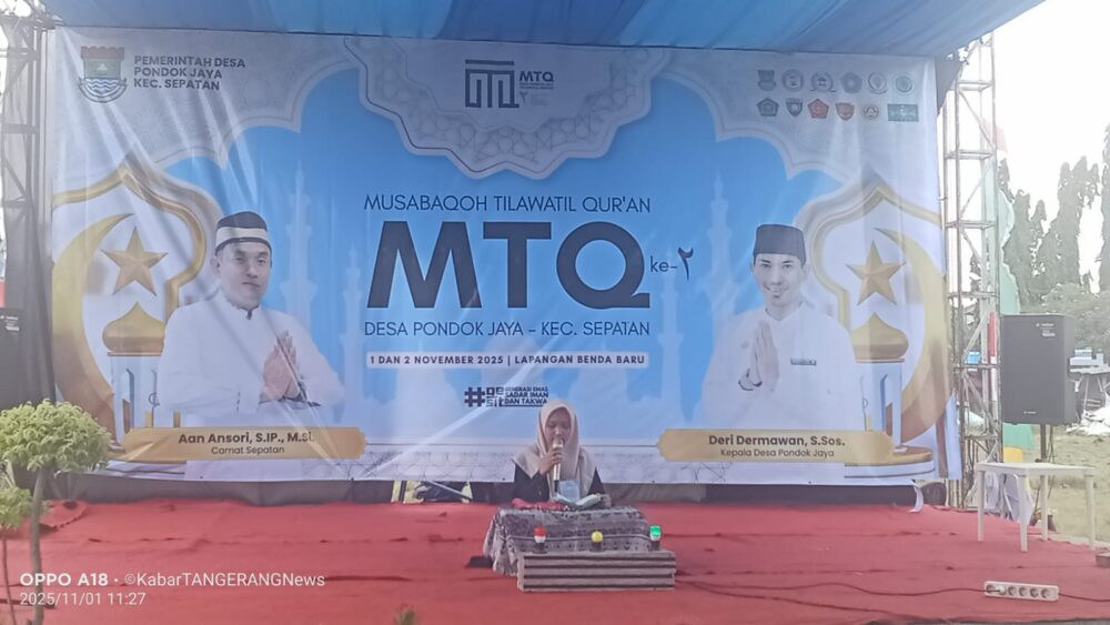 KABUPATEN TANGERANG – Semangat syiar Islam kembali menggema di Desa Pondok Jaya dengan dibukanya secara resmi Musabaqah Tilawatil Qur’an (MTQ) ke 2 tingkat desa Pondok Jaya tahun 2025. Acara di pusatkan di lapangan Benda Baru Desa Pondok Jaya Kecamatan Sepatan, MTQ di gelar selama 2 hari terhitung dari hari Sabtu – Minggu (1 -2 /11/2025).