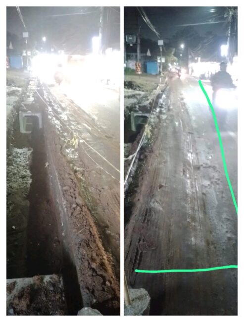 Penyebabnya, karena tanah bekas galian dan lumpur dibiarkan menumpuk di sisi badan jalan, menyebabkan permukaan jalan menjadi licin dan membahayakan pengendara. Tak sedikit warga yang hampir menjadi korban akibat kelalaian pelaksana kegiatan.