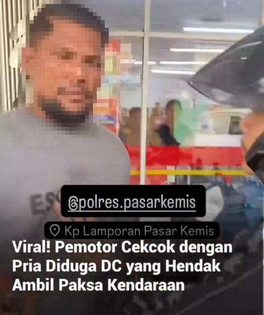 KABUPATEN TANGERANG – Sebuah video adu mulut antara seorang pemotor dan pria yang diduga debt collector (DC) di Kampung Lamporan, Pasar Kemis, Kabupaten Tangerang, viral di media sosial. Video tersebut ternyata direkam langsung oleh istri pemotor, yang ketakutan saat melihat suaminya terlibat cekcok.