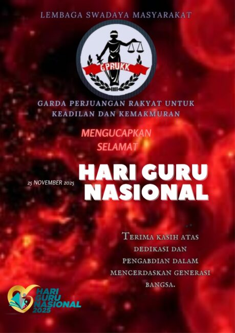 kABUPATEN TANGERANG  – Lembaga Swadaya Masyarakat (LSM) Garda Perjuangan Rakyat untuk Keadilan dan Kemakmuran (GPRUKK) mengucapkan selamat Hari Ulang Tahun (HUT) ke-80 Persatuan Guru Republik Indonesia (PGRI) dan Hari Guru Nasional 2025, Selasa (25/11/2025).