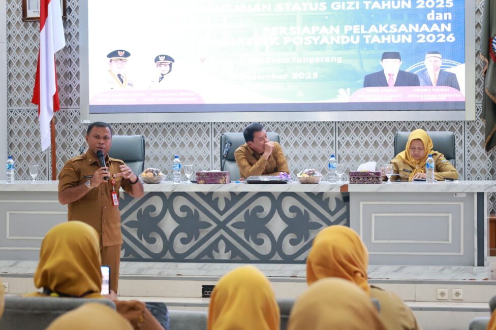 KABUPATEN TANGERANG – Bupati Tangerang, Moch Maesyal Rasyid meminta kepada seluruh camat, Puskesmas, Kepala Desa dan Luruh untuk mencatat seluruh balita yang mengalami masalah gizi di wilayahnya masing-masing. Hal tersebut diugkapkan Bupati Maesyal Rasyid saat membuka acara Diseminasi Hasil Surveilans Gizi yang digelar di Aula Pendopo Bupati Tangerang, Selasa (16/1/25)