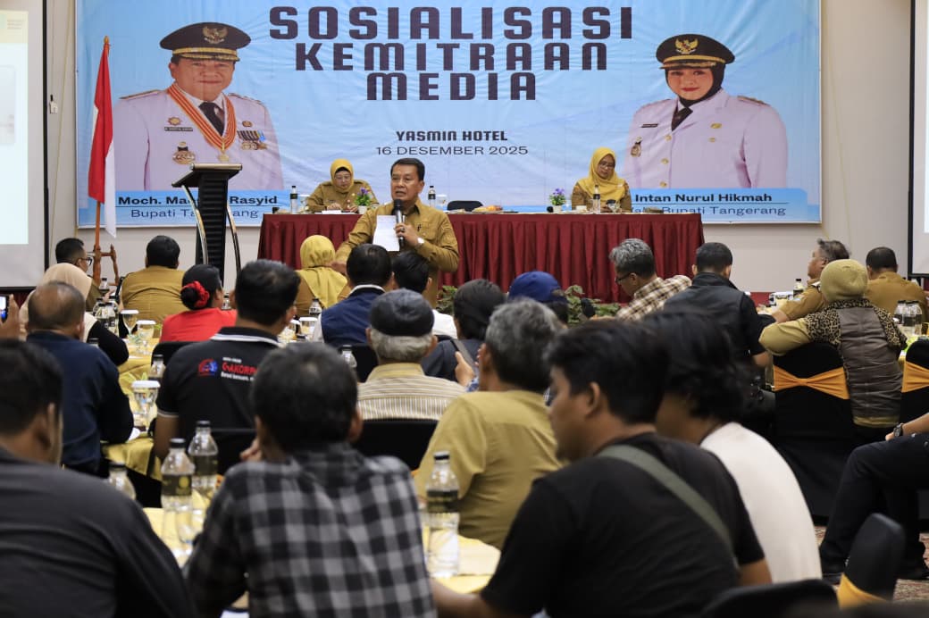 KABUPATEN TANGERANGPemerintah Kabupaten (Pemkab) Tangerang memperkuat sinergi dengan insan media melalui kegiatan Sosialisasi Kemitraan Media yang digelar di Hotel Yasmin, Kecamatan Legok, Selasa (16/12/2025).