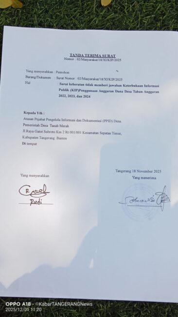 KABUPATEN TANGERANG – Mangkir dalam surat pemanggilan pengadilan KI BANTEN pertama kepala desa Tanah Merah bilangnya tidak mengetahui ada nya surat panggilan Jum’at(15/01/2026).