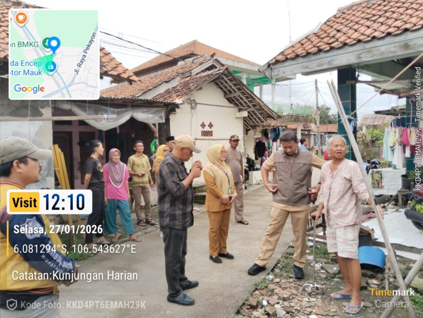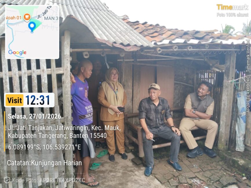 KABUPATEN TANGERANG – Camat Mauk Angga Yulyantono bersama Kepala Seksi Pembinaan dan Pengawasan Pemerintah Desa, serta Kepala Desa Jati Waringin Hasan Bahri melaksanakan Tinjau Rumah Tidak Layak Huni (RTLH) Di Tiga RT 002/001,001/001,001/003,Desa Jati Waringin Kecamatan Mauk Kabupaten Tangerang,Selasa (27/01/2026).