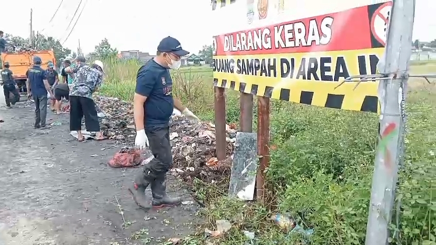 Pemdes Jati Mulya Bersama Camat Sepatan Timur Turun Langsung Gotong Royong Angkut Sampah Liar